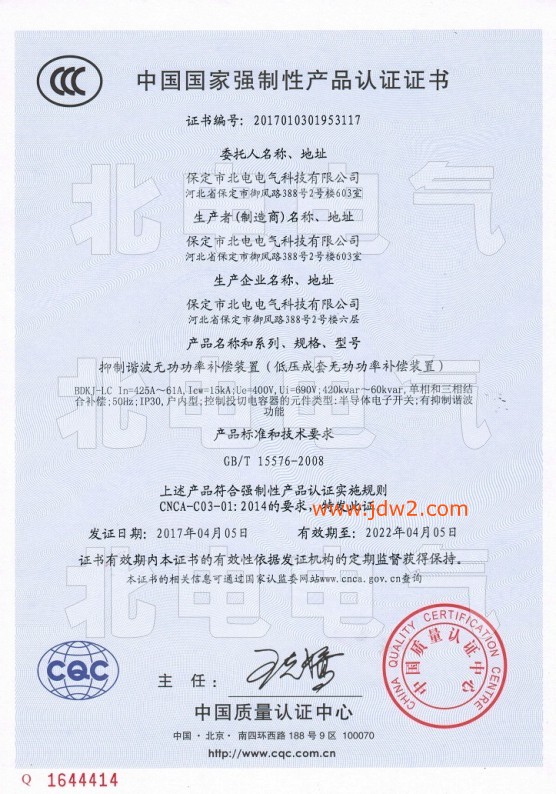 CCC质量认证证书