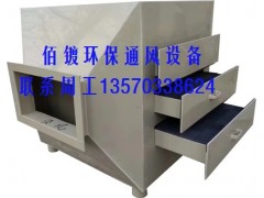 利用活性炭多微孔的吸附特性吸附有机废气是一种最有效的工业处理手段。使用特殊成型的蜂窝状活性炭作为吸附材料是利用活性碳多微孔的吸附特性。活性炭是许多具有吸附性能的碳基物质的总称,其经过活化处理后,比表面积一般可达700-1000m2/g,具有优异和广泛的吸附能力。活性炭还是一种非极性吸附剂,具有疏水性和亲有机物的性质,它能吸附绝大部分有机气体,如苯类、醛酮类、醇类、烃类等以及恶臭物质。同时由于活性炭的孔径范围宽,即使对一些极性吸附质和一些特大分子的有机物质仍表现出它优良的吸附能力,如在SO2、NOX、Cl2、H2S、CO2等有害气体的治理中。我公司选用的优质蜂窝状活性炭具有性能稳定、抗腐蚀和耐高速气流冲击的优点,用其对有机废气进行吸附可使净化效率高达90%。由于活性炭具有饱和性,需定期更换。有机废气和臭味(苯类、酚类、醇类、醚类、酊类)活性炭吸附箱对于浓度低于1000mg/m3的废气净化后达到《大气污染物综合排放标准》(GB16297-1996)的排放标准,且能达到最新的《环境空气质量标准》(GB3095-2012)的二级标准排放要求。