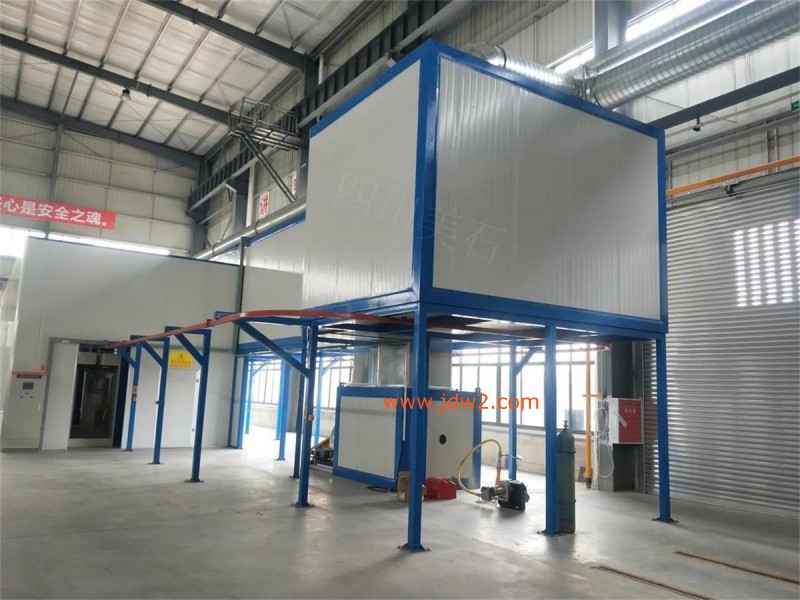 喷漆线:上喷淋前处理烘干脱水冷却—底漆—流平—面漆—流平—烘干(30min、80℃)—冷却—下件