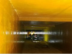 二、喷刷底层环氧树脂胶料。水泥砂浆基层经处理后,应喷刷底层胶料,已免二次粘污;玻璃钢防腐喷刷时应均匀,不可以漏涂、流挂等问题,配制好的环氧树脂胶料在40分钟内应该用完。