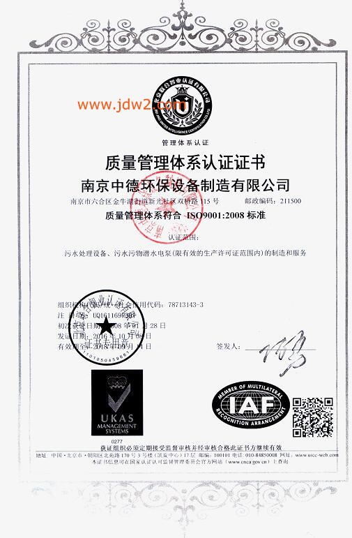 质量管理体系认证证书