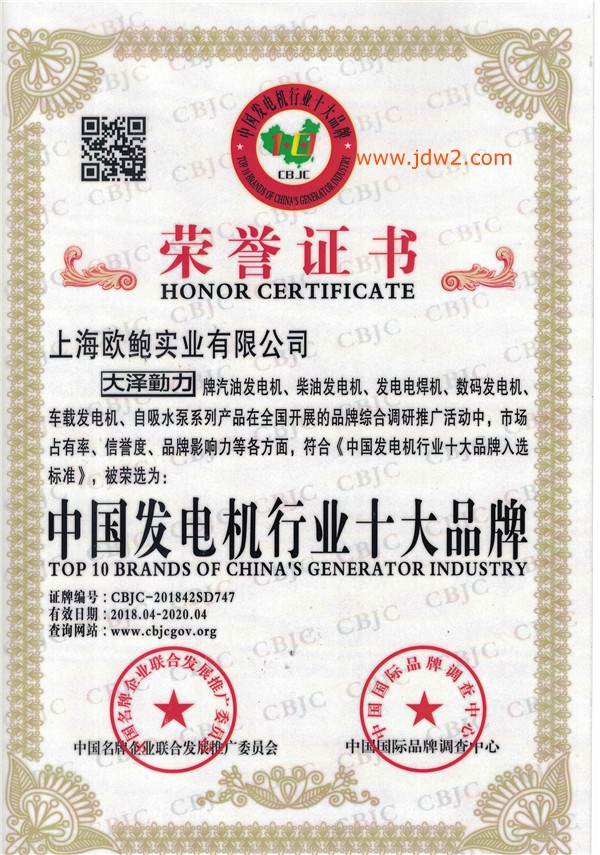 证书介绍 大泽动力是一家销售大泽品牌的发电机,大泽现在主营: