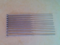 扁顶针也叫扁销,主要用于塑料产品筋条部分的顶出,还有就是长条形的胶位,圆顶针无法摆下的时候,我们选择用扁顶针。 扁顶针是塑胶模具配件,用于塑胶模具中。 扁顶针亦可叫推杆、镶针、中针、托针等,有时候车床用的也被叫做顶针 塑胶模具扁顶针的材质有SKH51、SKD61、SKD11、65Mn等。