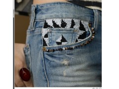 牛仔裤 珠饰 链条 贴钻。能生产的联系一下
