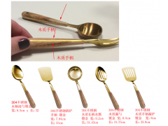 采购 厨房用具 勺子 铲 材质:304不锈钢+木柄 镀金 产品如右图 规格如右图 报价: 1 请每款按1000支分别报价 2 五种合为一套,按1000套报价,每套多少钱? 请有做的厂家跟小陈联系