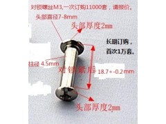我司急购对锁螺丝 [ M3,柱径4.5,长18.7+-0.2(不含头),十字盘头,头径7-8,头厚2,材料是1040(镀镍) ],一次下单购11000套,锁紧后的间距要求长18.7+-0.2(不含头),若贵司有现货请报价,若无现货请也请尽快报价和时间,谢。若有相近尺寸也可以,具体尺寸请见图片。Smartmanu, Inc.深圳市精业万为科技有限公司,张先生 ,地址:深圳市南山区南海大道金晖大厦2310室;