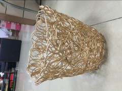 材质:3厘铝线;表面处理:氧化;包装要求:K=A+五层(1*1); 金色尺寸:1、开口直径:25cm , 2、底部直径:19cm 3、高24cm 4、重量0.72KG; 蓝色尺寸:1、开口直径:34cm , 2、底部直径:24cm 3、高11cm 4、重量0.64KG;