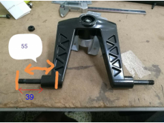 名称:手柄滑板车前支架 规格:见图纸 材质:LM6或ADC12 用量:1个 备注:如图连车轴一起出模 车轴: 材质:中碳钢 尺寸:外径7.9mm 长度:轴连压铸件部分左右各长55mm,安装轮子部分39mm,如图