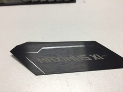 111mm*40mm*0.4mm铝片 工艺:1氧化 2镭雕文字 3、裁切 4、折弯