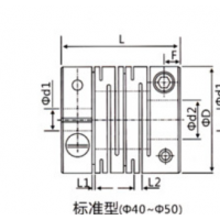 弹性联轴器,材质:铝合金或者不锈钢,尺寸见图纸。 长L=50 直径D=40-50,d1=12.7mm d2=15