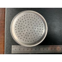 304不锈钢花洒头,直径81mm, 孔径1.2mm, 材料厚度0.4mm, 数量2000~10000个,由两部分组成共38g重。有冲压拉伸包边。