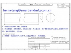 2.)合金钢销子,所有的配件, 在机加工之后,无心磨之前,销子需要做感应淬火硬化,硬度在HRC55-63, 硬化层深度2.0 - 4.0mm。