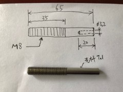 304不锈钢单头螺丝加工,M8*65mm,一侧钻3.2*20mm深