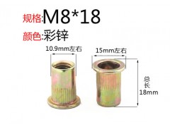 求购拉铆螺母滚花拉帽8*18要求价格在0.09元含13税含运费。颜色:镀白锌或者彩锌都可以。每次采购一万个。给现款。价格能做的请发样品确认