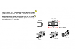我们需要一种T型的紧固件来连接: 壁厚。060”,内部尺寸是7/8"*3/8"的铝型材。 理想的状态是:紧固件能恰到好处的跟铝型材相配合。下面给出了几种选择,请挑合适的报价