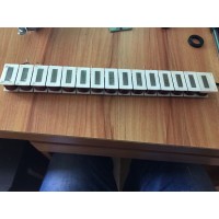 矽钢片吸盘电五金冲压件,矽钢片冲压件,产品规格为:240mm*16mm*0.5。整体由38片组装而成,整体厚度为38.8mm