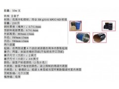铁桶 含盖子材质:优质冷轧钢材,符合JIS g3141 SPCC-SD标准容量:210升钢材厚度(桶身):0.7-1.4mm顶部和底部厚度:0.7-1.4mm外部高度:883mm ±3mm外径:585mm ±3mm内径:580mm ±3mm两个滚圈起皱:在两侧设置4个波纹或滚箍在阀体内膨胀起皱塞子:两套,安装在桶的顶部(不包括在开口顶部)塞子尺寸(大的):2英寸塞子尺寸(小的):3/4英寸颜色:按客户标准颜色(2色/3色)外表面:按客户指定的颜色,涂上特制的烤漆外表面内表面:1. 普通的2。底漆3.单层或双层环氧酚醛漆衬里内表面顶底板缝:七个三棱桶身缝:电焊