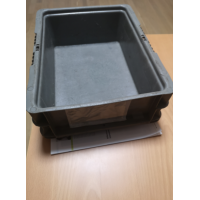 外观尺寸38 x 30 x 12cm,接近就可以,承重要求,16公斤。塑料材质,颜色不限,原样的重量是743克。 外观形状基本符合即可,这款现有产品,是美国产的,品牌为Orbis,型号为NXO1215-5
