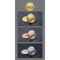 如图,本司现亟需求购定制胸章徽章,首批200个,圆形,边缘斜切抛光或立体浮雕拉丝/光面,直径2CM,厚度适中。制作工艺为正面细磨砂底纹,LOGO外凸,立体浮雕拉丝,边缘斜面抛光或立体浮雕拉丝/亮光效果,正反面和针帽均电镀香槟金或玫瑰金;背面圆心有扣针,带卡帽。请按铜、锌合金、不锈钢等材质电镀香槟金/玫瑰金仿金或24K金分别报价。请有生产制作此类胸章徽章的厂家从速提供实样,可直接来电与本司联系并报价,谢谢!