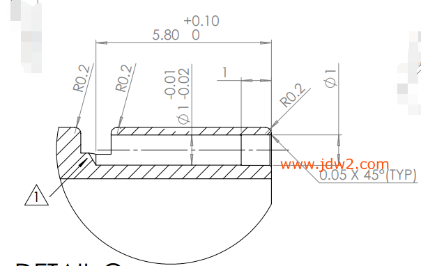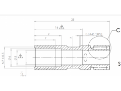外形尺寸8*25mm; 外圆均分8个孔,孔径1mm,深度6mm,公差-0.01~-0.02mm