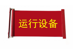 材质要求:卷轴磁吸式红布幔,采用优质纯棉防静电布料,颜色醒目,且不易褪色。红布帘上印有“设备运行中”、“设备正在运行”、“运行设备” 黄色字样,红布帘两边有磁铁,且具有卷轴功能,磁铁吸附能力较强,悬挂时不易掉落,收卷时顺畅,不易卡阻。