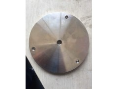 1、材质:304不锈钢,直径150mm,厚11mm。 2、中心孔加工:M12的螺纹,打通。 3、支持孔加工:每120度开一个M8的螺纹,深度8mm,螺纹中