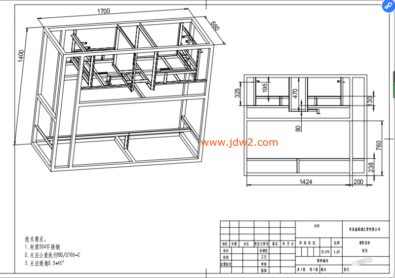 批量加工304不锈钢框架,技术要求:根据图纸加工