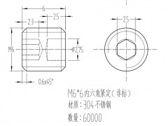 304不锈钢M6*6mm紧定螺丝,内六角对边是非标2.5mm的,一头是2.75mm的kon孔,见附图图纸