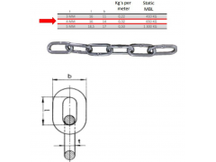 4mm的短环链条, 每31环为一条。 总共46000条。 静态破断力650KG,符合DIN 766标准。