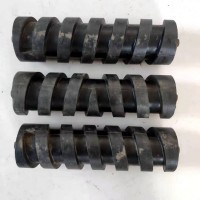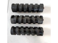 图片三个产品的尺寸为(mm): 直径89,长度305,螺旋宽22.5,螺距48,槽深10,左中右螺旋三个为一组,一个磨具出这三个,镶嵌式模具