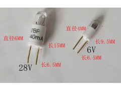 指示灯用:28V400MA-直径6MM,高度15MM,铜插针间距4MM,如图