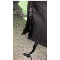600D牛津布金属制品防雨罩定制,两侧有1米高的拉链,旁边有两个魔术贴,下方有卡扣和抽绳结