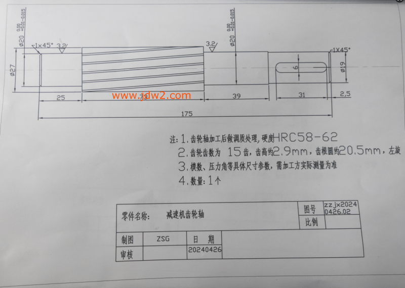1、齿轮轴加工按照甲方提供的图纸要求进行加工,不经甲方同意不得擅自改动图纸上面的技术要求;2.如果乙方有需求,甲方可提供样品供乙方参考加工。但样品邮寄费用需乙方承担,使用完毕后同加工产品一同寄回。3.详情见图纸及图片,有疑问可联系采购人员。