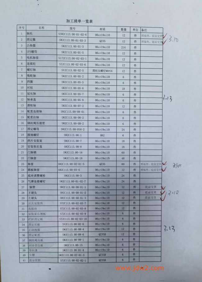 轴类加工件,6套的清单,如下图,联系发其它几十张图纸报价