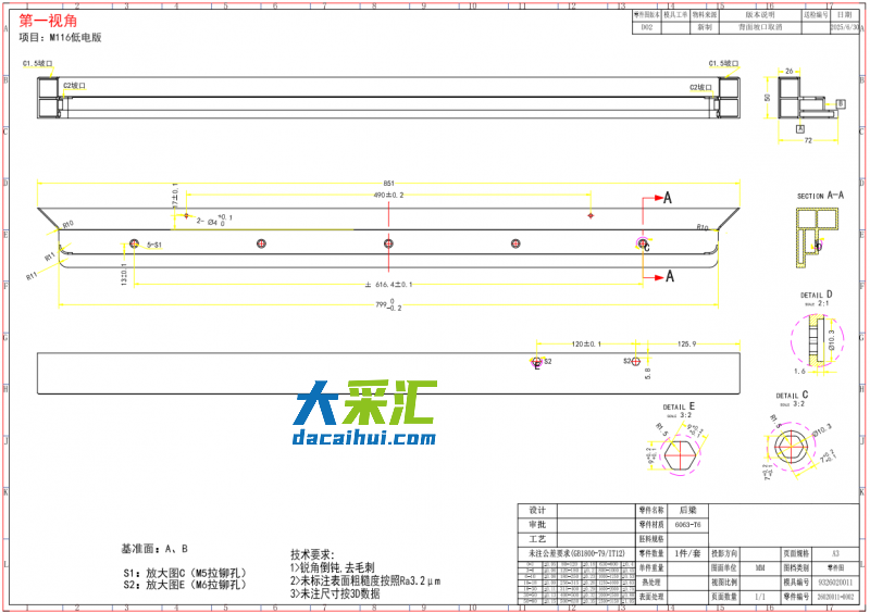 采购方提供毛坯料,材料参考6061,供应商仅做机加工部分,长期需求。电脑端下载2D3D: