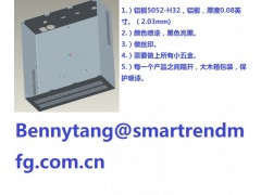 1.)铝板5052-H32,铝板,厚度0.08英寸。(2.03mm) 2.)颜色喷漆,黑色亮黑。 3.)做丝印。 4.)需要做上所有小五金。 5.)每一个产品之间隔开,大木箱包装,保护喷漆。