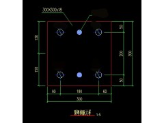 材质Q235,技术要求详见附件图纸,孔距误差小于1mm,周围四个孔为31mm,中间两孔为23mm,热镀锌处理。