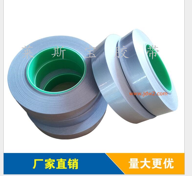 麦拉铝箔胶带: 以高纯度99%的铝箔为基材再覆以PET及环保型的导电胶或者不导电胶而成的麦拉铝箔胶带,具有极佳的静电消散性;不易皱折,不易撕裂 ,耐热、稳定性良好 ;一面导电,一面绝缘,可有效的保护包覆的部位 ; 主要作为的EMI保护材料,提供了极佳的产品使用效能和 作为电线、电缆的ESD遮蔽材,应用笔记本电脑、手机及通讯设备中。其功能为消除电磁(EMI)干扰,隔离电磁波对人体的伤害,避免不需要电压与电流而影响功能。另外,对于接地后之静电泄放有良好的效果。材质为多元酯纤维,在重复使用或多次弯折后皆不易发生裂痕及损伤。粘贴力强、导电性能良好,能轻易的缠绕贴合在线材上,可根据客户要求裁切成各种规格。
