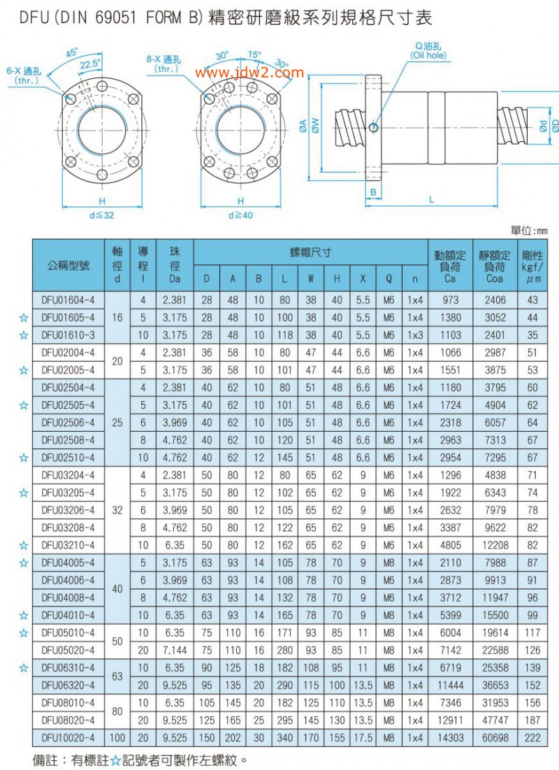 该系列丝杆的特点:1、内部循环的设计,可以节省使用的空间;2、驱动扭矩小,为滑动丝杆的1/3;3、高精度保证;4、能微量的进给,可以控制在0.1微米之内;5、无间隙,高刚性。