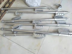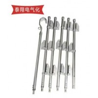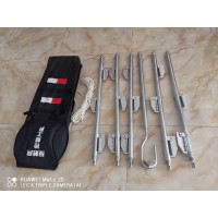 接完后:用风绳栓在钩一侧的环内,一人稳住底部,一人拉绳,一到二人往起立,根据梯子的长短限定人数,立起后把挂钩勾在承力索或其它能固定的地方。