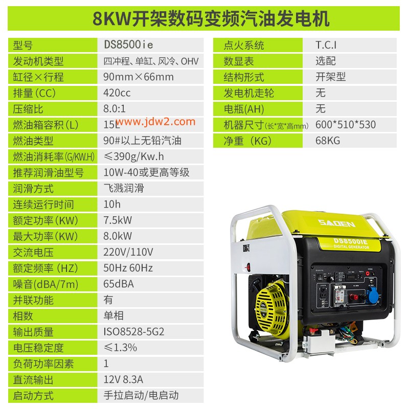 萨登8000W开架式发电机性能可靠