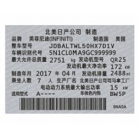 我公司应对进口车、国产车整车需求,采用进口材料,专业设计制作汽车所需的:中文出厂铭牌标签、发动机号码标签、VIN码标签等柔性标签产品。我司的柔性汽车标签产品有黑色哑光、黑色亮面、银色、白色四种颜色材料,标签基材具有耐高温、耐油污、易碎且黏贴牢固的特点,一旦被黏贴在车身不能被完整撕毁,具有良好的防伪特性。英菲尼迪汽车出厂铭牌、英菲尼迪汽车英文铭牌、进口英菲尼迪汽车铭牌、东风英菲尼迪汽车铭牌定制。
