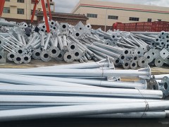 2、立杆或横支臂采用直缝钢管或无缝钢管;立杆与横支臂的连接端头采用与横臂相同钢管,焊接增加板保护;立杆与基础采用法兰盘加预埋螺栓连接,焊接增加板保护;横支臂与立杆端头连接方式采用法兰盘连接,并进行焊接增加板保护;