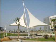 膜结构设计主要包括车身外形设计、初始平衡、形状分析、载荷分析和切削分析四大问题。通过外形设计确定施工平面形状、尺寸、三维造型、净空容积,确定各控制点的坐标、结构形式、膜材料的选择和施工方案。初始平衡形状分析称为找形分析。由于膜材料本身没有抗压和抗弯刚度,抗剪强度较差,因此,刚度和稳定性取决于膜的表面曲率的变化和施加预应力来提高,对膜结构,任何时候有无应力状态,使膜表面形状最终必须满足力学平衡条件,在某预应力的边界条件,并用于负荷分析的基础和切割。薄膜结构的找形方法包括动力松弛法、力密度法和有限元法。膜结构中考虑的荷载一般是风荷载和雪荷载。在荷载作用下,薄膜材料的变形较大,载荷分布随形状的变化而变化。因此,应采用几何非线性方法精计算结构的变形和应力。荷载分析的另一个目标是确定拉索和膜的初始预张力。在载荷作用下,薄膜应力方向增大,而另一方向应力减小,这就要求在承受最不利载荷的情况下,使张颖丽的初始应力满足不应减为零,这样就不会出现褶皱。由于薄膜材料是软的,固有频率很低,容易产生风振风荷载作用下,造成膜的损伤,如果初始预应力太高,变增加的膜材料,老化和强度储备,构件强度要求高的应力,增加施工难度。因此,初始预应力的确定应通过荷载计算来确定。在找形分析和结构的形成通常是不接触三维曲面,通过二维材料的切割,延伸到三维表面需要的形式,是一种对膜结构工程的关键问题,这是裁剪分析的主要内容。| 功能 | 遮阳 |