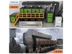 该设备是依据吸附(效率高)和催化燃烧(节能)两个基本原理设计的,即吸附浓缩-催化燃烧法。该设备采用双气路连续工作,设备两个吸附床可以交替使用。含有机物的废气经风机的作用,通过活性炭吸附层,有机物物质被活性炭特有的作用力截留在其内部,洁净气体排出;经过一段时间后,活性炭达到饱和状态时,停止吸附,此时有机物被浓缩在活性炭内。催化净化装置内设加热室,启动加热装置,进入内部循环,当热气源达到有机物的沸点时,有机物从活性炭中溢出,进入催化室进行催化分解成二氧化碳和水,同时释放出能量。利用释放出的能量再进入吸附床脱附时,此时加热装置完全停止工作,有机废气在催化燃烧室内维持自燃,尾气再生,循环进行,纸质有机物完全从活性炭内部分离,至催化室分解。活性炭得到再生,有机物实现催化分解处理。