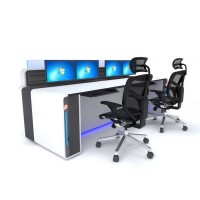 {控制台} 结构:钢木组合拼装,安装方便快捷,外形美观实用。下部设计有标准19英寸机柜,可满足各种设备的安装!