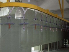静电喷涂流水线是一种高效、高质量的涂装工艺,广泛应用于各个工业领域。以下是详细的工艺介绍: **一、预处理阶段** 1. **表面清洁** - 目的是去除工件表面的油污、铁锈、灰尘等杂质。这是非常关键的一步,因为如果工件表面不清洁,会导致涂层附着力差,容易出现起皮、脱落等问题。 - 通常采用化学清洗的方法,如使用碱性脱脂剂去除油污。对于有铁锈的工件,会使用酸洗溶液(如磷酸、**等)进行除锈。在清洗后,需要用清水彻底冲洗工件,以去除残留的化学药剂。 2. **表面调整** - 表面调整是为了使工件表面形成一层均匀的晶态磷化膜或钝化膜,这有助于提高涂层的附着力。例如,在磷化处理过程中,工件浸入磷化液中,磷化液中的磷酸二氢锌等成分会与工件表面的金属发生反应,形成一层磷化膜。这层磷化膜可以为后续的涂层提供良好的附着基础。 3. **干燥处理** - 经过清洁和表面调整后的工件需要进行干燥。干燥的方式有多种,如自然晾干、热风吹干或者在烘干炉中烘干。烘干温度和时间根据工件的材质和大小等因素而定。一般来说,对于小型金属工件,烘干温度在100 - 120℃左右,时间为10 - 20分钟左右,这样可以确保工件表面完全干燥,为静电喷涂做好准备。 **二、静电喷涂阶段** 1. **粉末静电喷涂原理** - 静电喷涂是利用高压静电电场使带负电的涂料微粒沿着电场相反的方向定向运动,并将涂料微粒吸附在工件表面。在静电喷涂设备中,喷枪头部带有高压电极,当粉末涂料从喷枪中喷出时,由于高压电场的作用,粉末涂料颗粒带上负电荷。 - 工件通常接地,形成电场的正极。带负电荷的粉末涂料颗粒在电场力的作用下,向工件表面加速运动,并吸附在工件表面。这种吸附作用可以使粉末涂料在工件表面形成比较均匀的涂层。 2. **喷涂参数控制** - **电压控制**:静电喷涂时的电压一般在40 - 100kV之间。电压过高可能会导致火花放电,使粉末燃烧或出现涂层表面缺陷;电压过低则会使粉末吸附力不足,涂层厚度不均匀。例如,对于一些形状简单、表面平整的工件,电压可以设置在60 - 70kV左右;而对于复杂形状的工件,可能需要适当提高电压,以确保粉末能够充分吸附在各个部位。 - **喷枪距离控制**:喷枪与工件表面的距离一般保持在15 - 30cm之间。距离过近,粉末容易反弹,造成涂层不均匀;距离过远,粉末吸附力减弱,也会影响涂层质量。例如,在喷涂汽车零部件时,根据零部件的形状和大小,喷枪距离通常在20 - 25cm左右。 - **粉末流量控制**:粉末流量根据工件的大小、形状和所需涂层厚度来调整。流量过大,可能会导致涂层过厚,出现流挂现象;流量过小,则可能无法达到预期的涂层厚度。一般通过调节喷枪的送粉装置来控制粉末流量。 3. **喷枪运动方式** - 在静电喷涂流水线上,喷枪的运动方式有多种。对于简单形状的工件,如平板状工件,喷枪可以采用直线往复运动的方式,确保涂层均匀覆盖工件表面。对于复杂形状的工件,如汽车车身等,喷枪可能需要结合多种运动方式,包括旋转、摆动等,以保证粉末能够均匀地吸附在工件的各个角落和缝隙处。 **三、固化阶段** 1. **固化原理** - 粉末涂料在工件表面吸附后是松散的状态,需要通过加热固化使粉末涂料熔融、流平并发生化学反应,形成坚硬、光滑的涂层。固化过程是一个热固化反应,不同类型的粉末涂料(如环氧粉末涂料、聚酯粉末涂料等)有不同的固化温度和时间要求。 2. **固化参数控制** - **温度控制**:例如,环氧粉末涂料的固化温度一般在180 - 200℃之间,聚酯粉末涂料的固化温度在160 - 180℃之间。固化温度过高可能会导致涂层变色、性能下降;温度过低则会使涂层固化不完全,硬度和附着力等性能不达标。 - **时间控制**:固化时间根据涂料类型和工件大小等因素而定。一般来说,固化时间在10 - 30分钟左右。在固化炉中,工件需要在合适的温度下保持足够的时间,以确保粉末涂料充分固化。 **四、后处理阶段** 1. **冷却处理** - 固化后的工件温度较高,需要进行冷却。一般采用自然冷却或者风冷的方式。风冷是通过在冷却区域设置风机,加速空气流动,使工件快速冷却。冷却后的工件温度应接近室温,这样便于后续的包装、搬运等操作。 2. **质量检查** - 对涂层质量进行检查,包括涂层厚度、外观质量(如是否有流挂、针孔、橘皮等缺陷)、附着力等。涂层厚度可以使用涂层测厚仪进行测量,确保厚度符合产品要求。外观质量检查主要通过肉眼观察或者使用光学显微镜等设备。附着力测试可以采用划格法等,通过观察涂层在划格后的脱落情况来判断附着力的好坏。