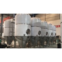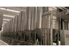 发酵系统说明:此阶段为啤酒酿造阶段。具体流程为:投料-糖化-过滤-煮沸(添加酒花)-回旋沉淀-麦汁热交换,然后泵入发酵罐进行发酵。啤酒发酵罐存储12-15天时间即可发酵储存成熟。